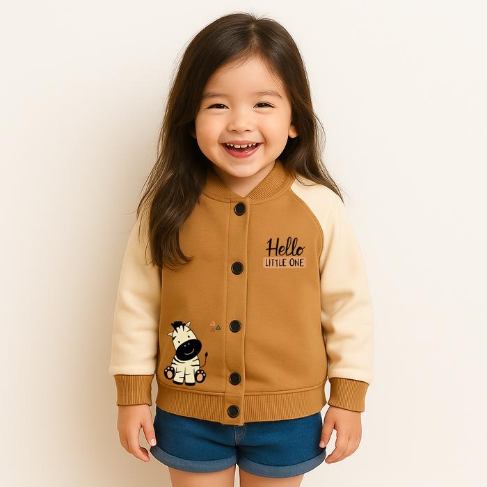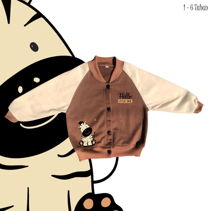 VARSITY JACKET BASEBALL ANAK ULA KIDS 1 - 6 TAHUN HELLO LITTLE ONE LENGAN UNISEX - MOCCA - KREME, M ( 1 - 2 THN )