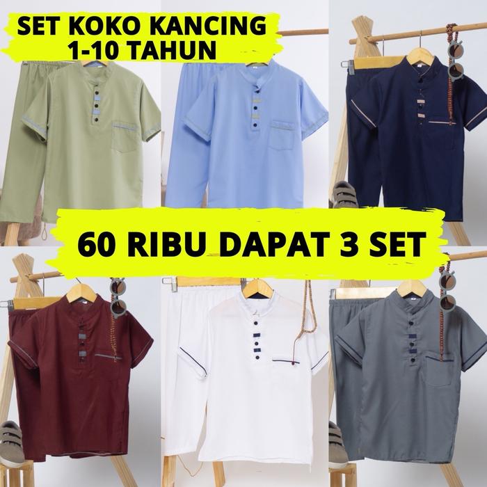 SETELAN KOKO MUSLIM KURTA KANCING ANAK USIA 1-10 TAHUN 60RIBU DAPAT 3 SET MLXL 81012 - SIZE M (1-2 THN) KCG 3 PCS