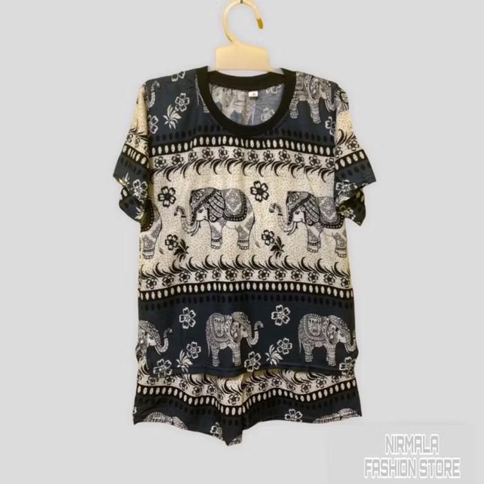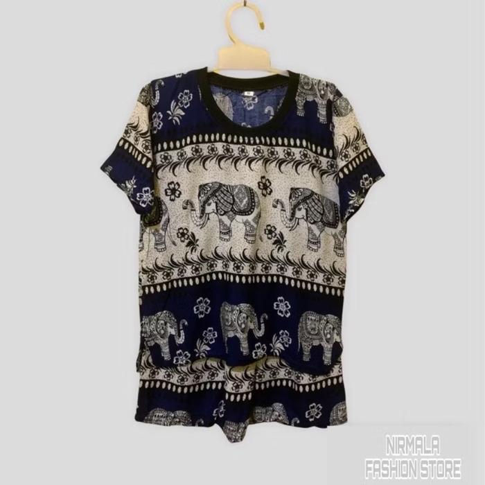 SETELAN ANAK KAOS MOTIF GAJAH - BIRU DONGKER, S