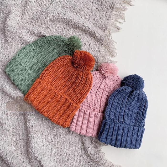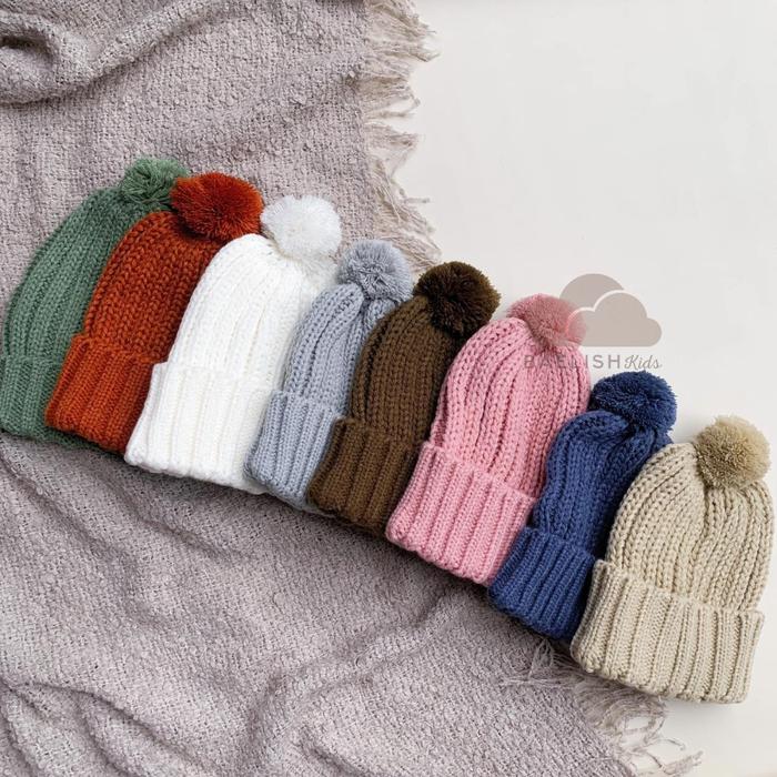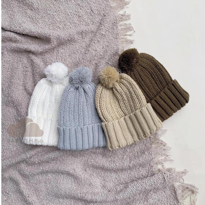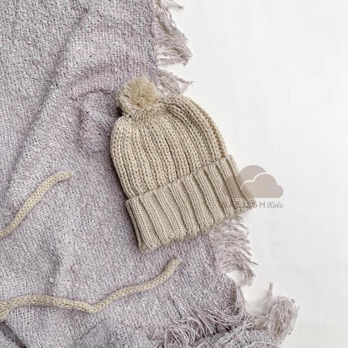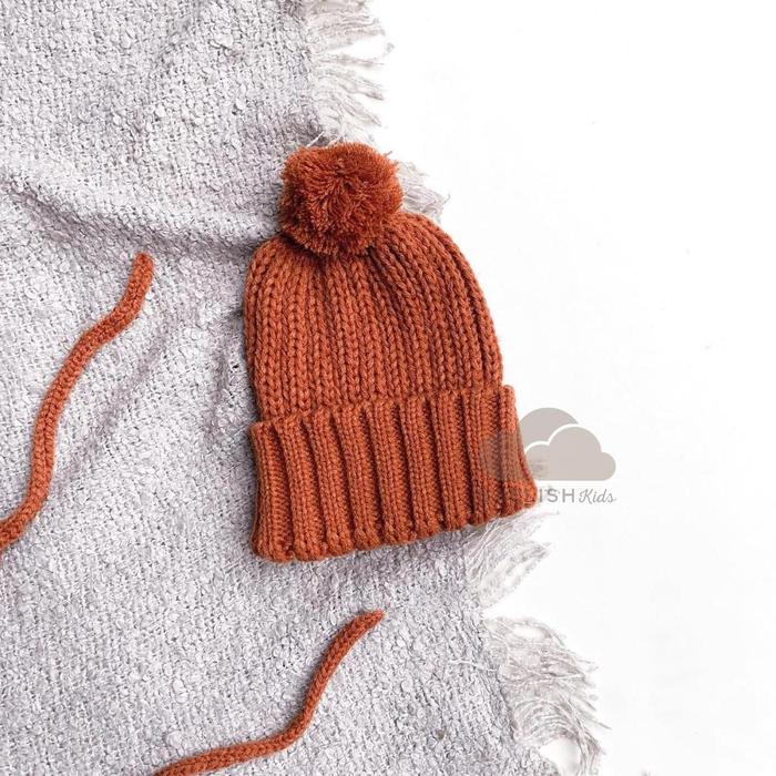 KUPLUK POMPOM BAYI - BEANIE HAT BABY - TOPI NEWBORN - BRONZE