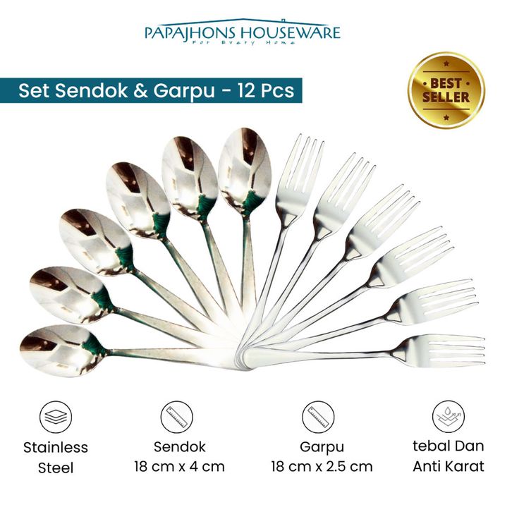 Sendok Garpu Peralatan Makan Tebal Stainless - 12 Pcs