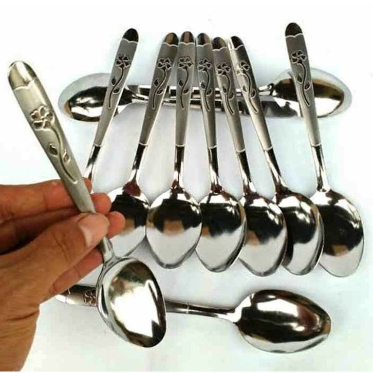 1Lusin Sendok Makan Stainless Steel Motif Mawar murah