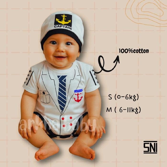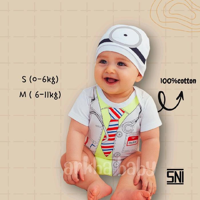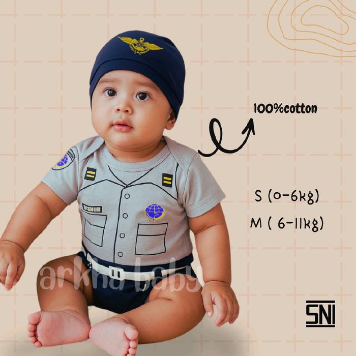 BAJU BAYI JUMPER BAYI MOTIF PROFESI LUCU /JUMPSUIT BABY/BAHAN KATUN NEWBORN LENGAN - POLISI, S (0-6KG)