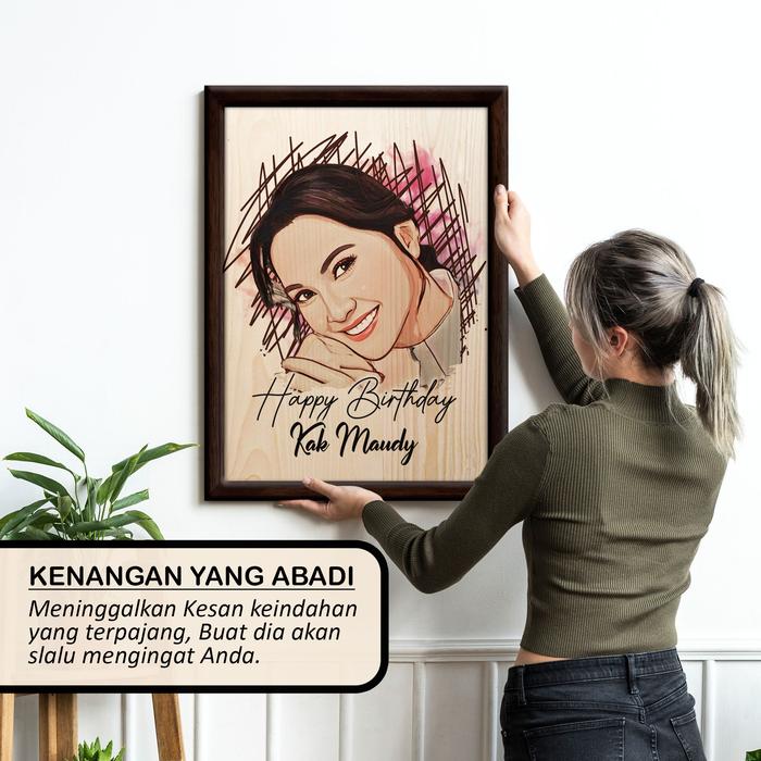 LUKISAN HADIAH ULANG TAHUN, PERNIKAHAN, WISUDA, KENANG KENANGAN, ANNIVERSARY PACAR - KAYU LUKIS SAJA, UK15X20CM + BINGKAI