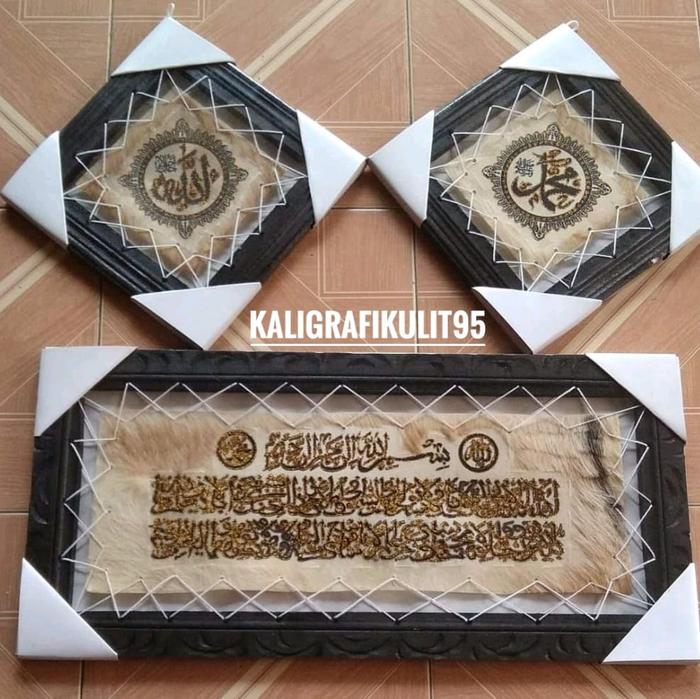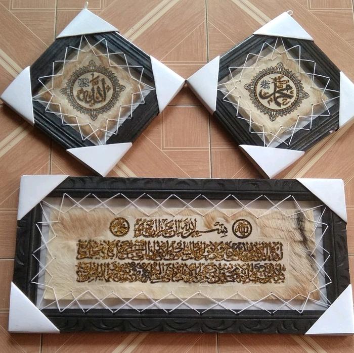 HIASAN DINDING KALIGRAFI KULIT KAMBING AYAT KURSI 1 SET 3 PCS KAYU PLASTIK - KITAB