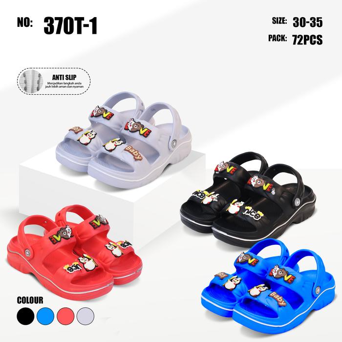 FLASH SALE SANDAL ANAK SELOP 370T-1 MODEL BONEKA LUCU BAHAN KARET EVA PREMIUM KAKI SEPATU - MERAH, 31