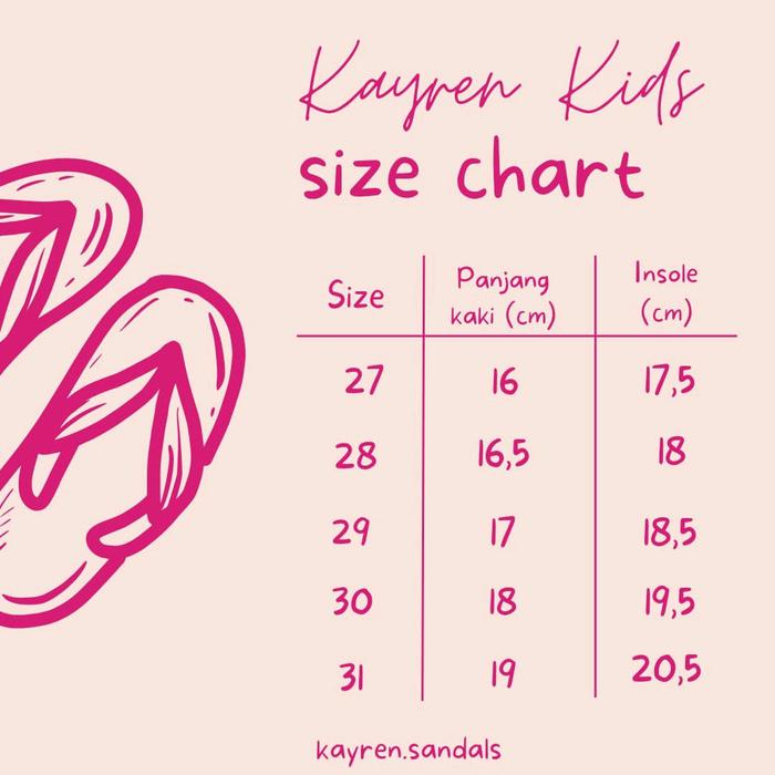 KAYREN SANDAL ANAK PEREMPUAN JEPIT YOORA KEPANG / KIDS SENDAL SOL KARET USIA 3 - 9 TAHUN FASHION - PINK, 31