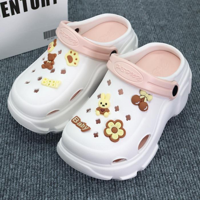 SANDAL ANAK PEREMPUAN 2-12 TAHUN KOLEKSI BARU SEPATU LUBANG-LUBANG GAYA KOREA DENGAN AKSESORI LUCU KAKI BAYI KAKI BAYI - 2305-PUTIH, 24/25