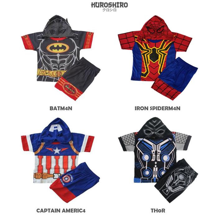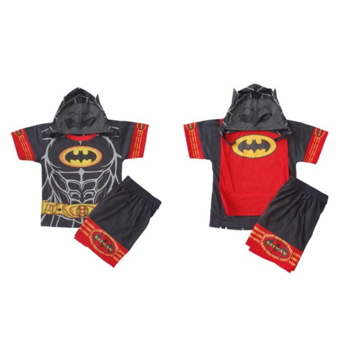 KUROSHIRO - SETELAN BAJU ANAK LAKI LAKI 1-9 TAHUN KOSTUM PENDEK SUPERHERO KAOS KUROSHIRO - BATM4N, 1/2/3 TAHUN (A)