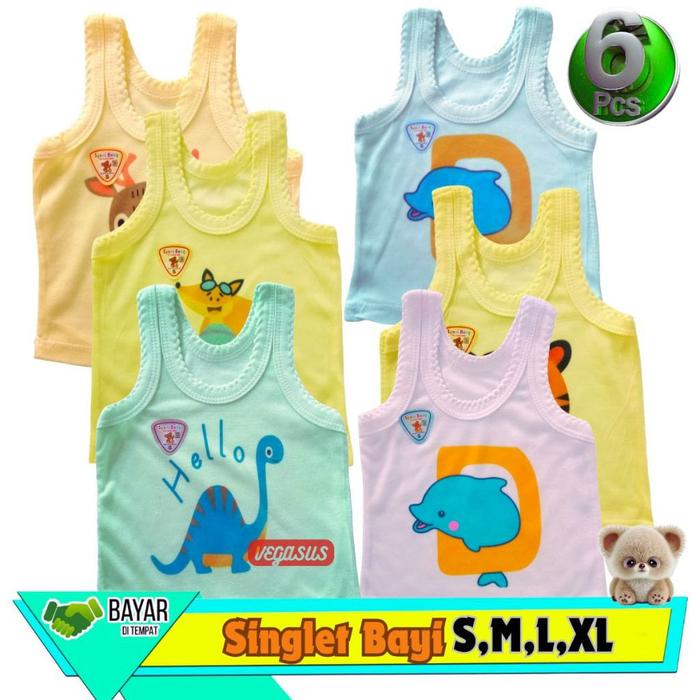 12PCS DAN 6PCS KAOS DALAM ANAK SINGLET HARIAN BERWARNA SIZE S/M/L/XL/3L FASHION - 6 PCS, S