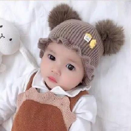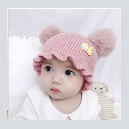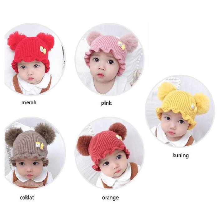 TOPI RAJUT ANAK / BAYI MOTIF POMPOM GELOMBANG - MERAH