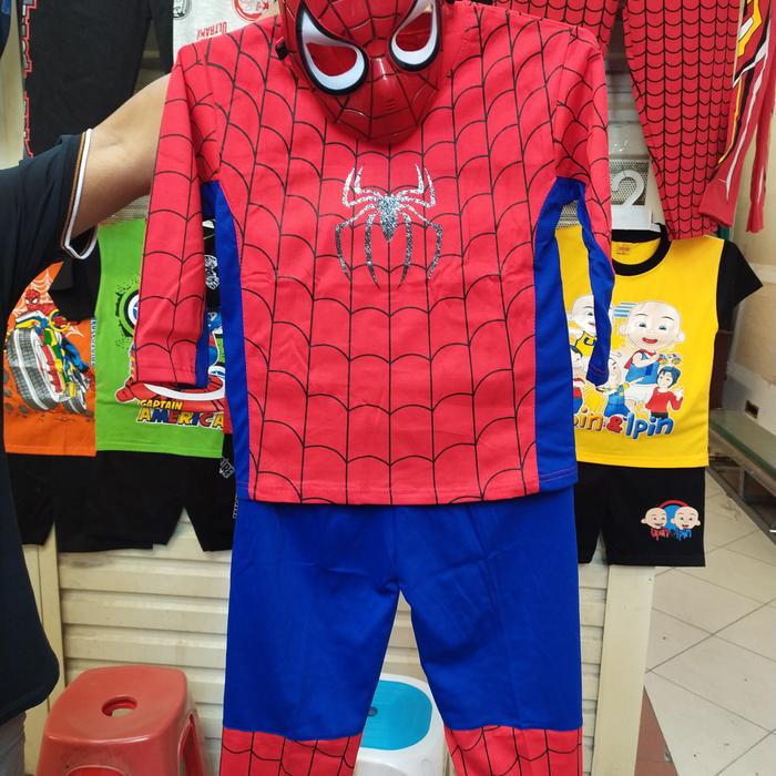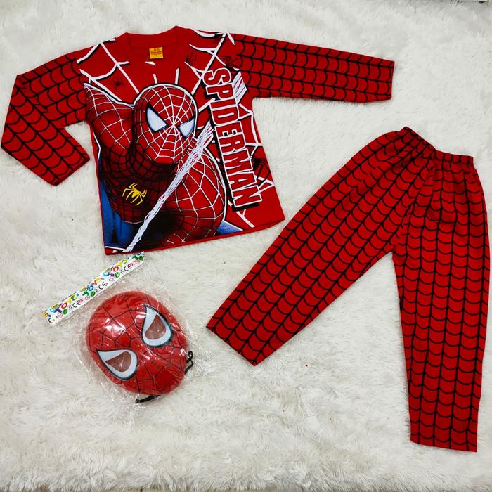 SETELAN BAJU KAOS KOSTUM TOPENG SPIDERMAN ANAK LAKI-LAKI - 7 TAHUN
