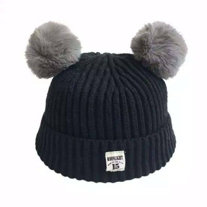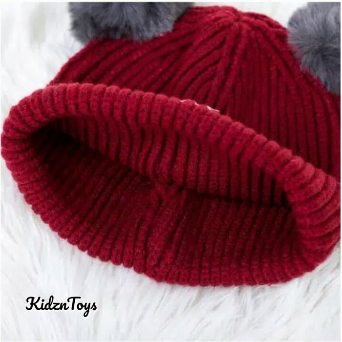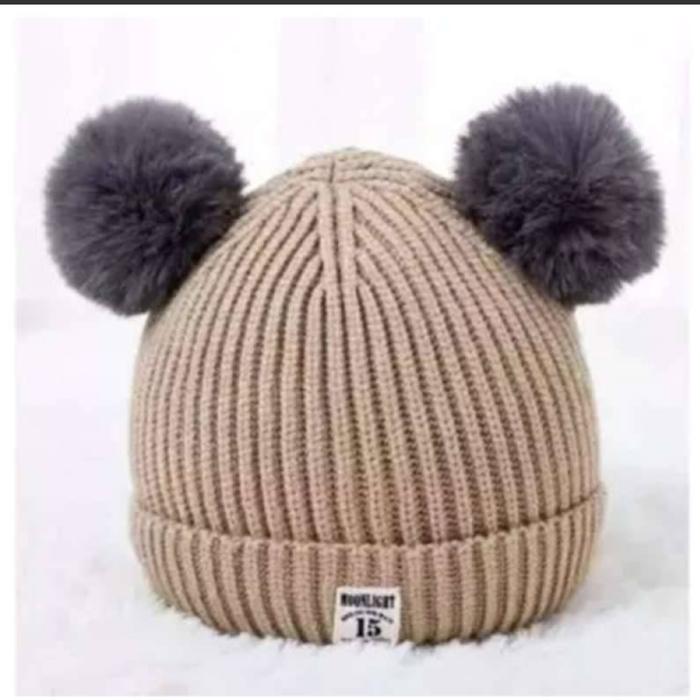 TOPI WINTER RAJUT KUPLUK BAYI POMPOM IMPORT CUTE KEREN - COKLAT MUDA