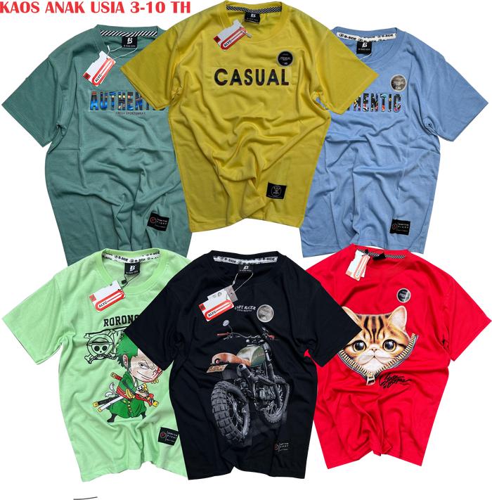 PAKET 6 KAOS ANAK LAKI-LAKI DISTRO SUPER PREMIUM KATUN 24S BRIGHTWEAR USIA 3-10 TAHUN FASHION - WARNA RANDOM/ACAK, 6 SIZE ( XS/XL ) ( ESTIMASI 21-27 KG ) (6-7 TH)