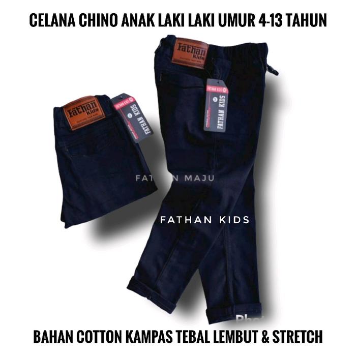 CELANA ANAK 4-13 TAHUN BAHAN KATUN TEBAL LEMBUT DAN KARET FASHION - CHINO HITAM, SIZE1=4TAHUN