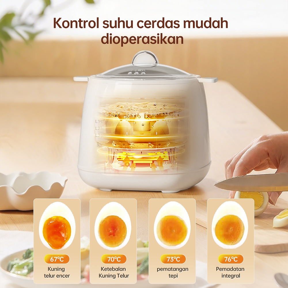 Saluyar Smart Egg Cooker – Mesin Rebus Telur Pintar 4 Butir, Timer AI, Multi Fungsi Yogurt & Puding, Desain Jepang