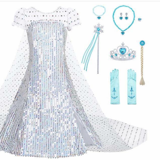 KOSTUM PRINCESS ANAK / DRESS PRINCESS ANAK / KOSTUM ELSA / GAUN ANAK - ELSA PUTIH, 150