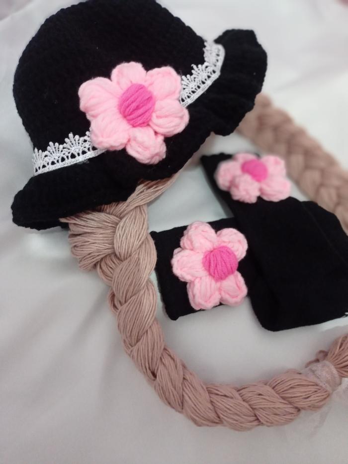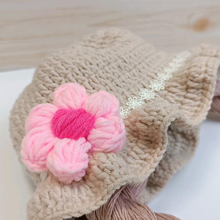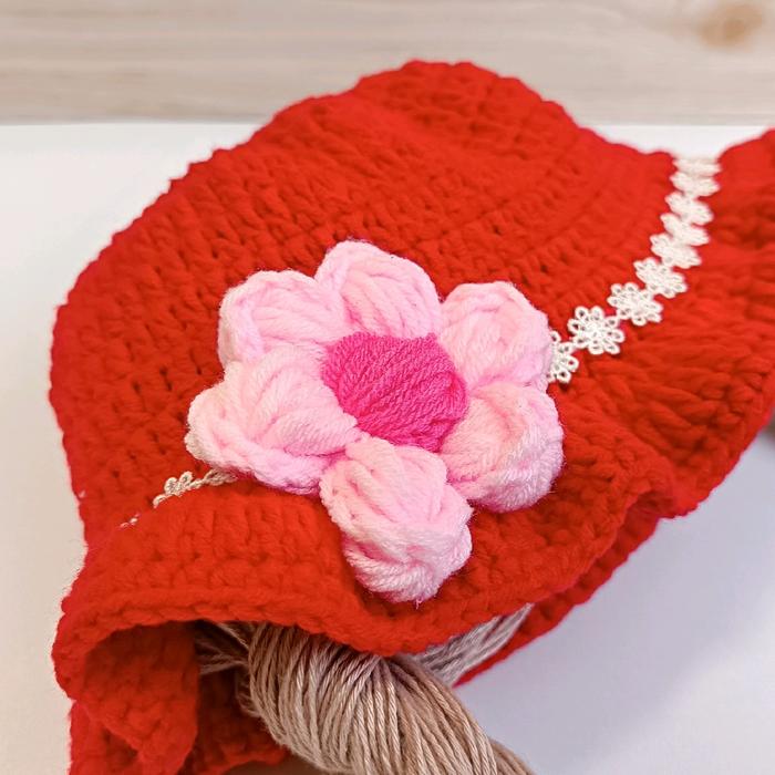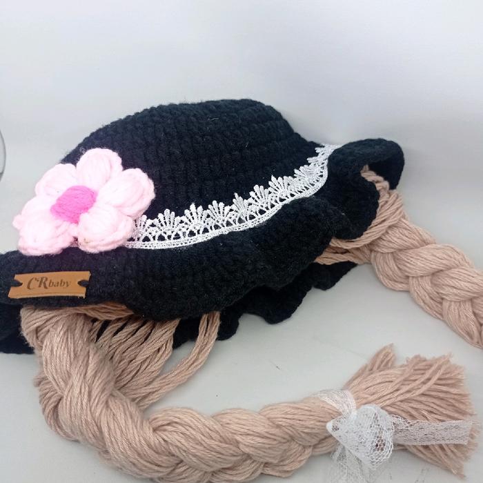 TOPI RAJUT ANAK BAYI PEREMPUAN RAMBUT KEPANG WIG PALSU BUNGA SIZE 0-4 TAHUN DARI NEWBORN WARNA CREAM PINK PEACH HITAM MERAH KUNING MUSTARD BIRU BAHAN IMPORT KUALITAS PREMIUM EKSPOR PUTIH - CREAM, M