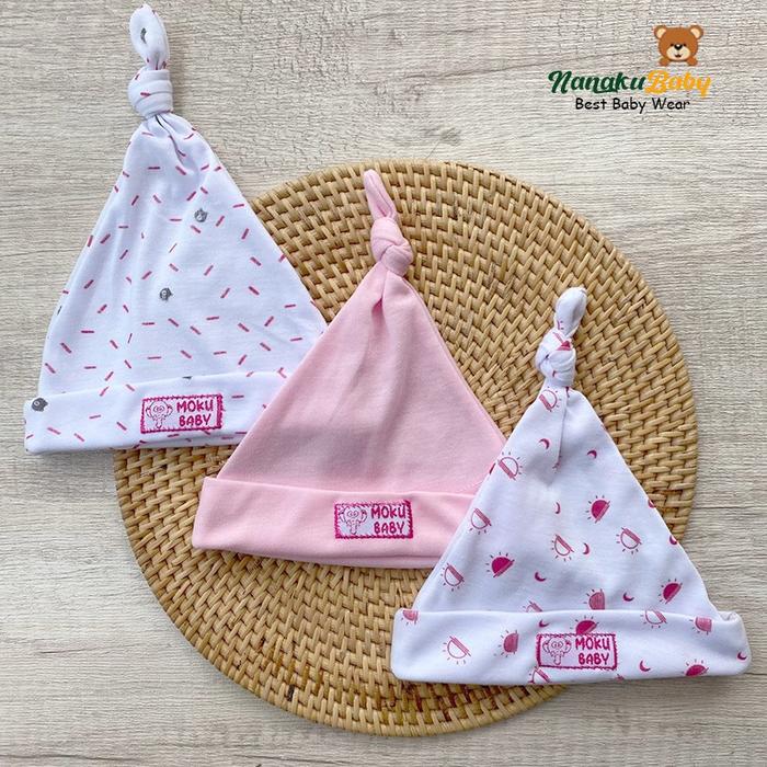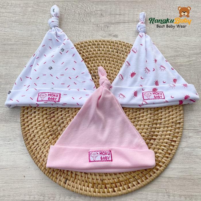 NANAKU BABY - 3 PCS KUPLUK BAYI TOPI BAYI BARU LAHIR USIA 0-3 BULAN - SERI PINK