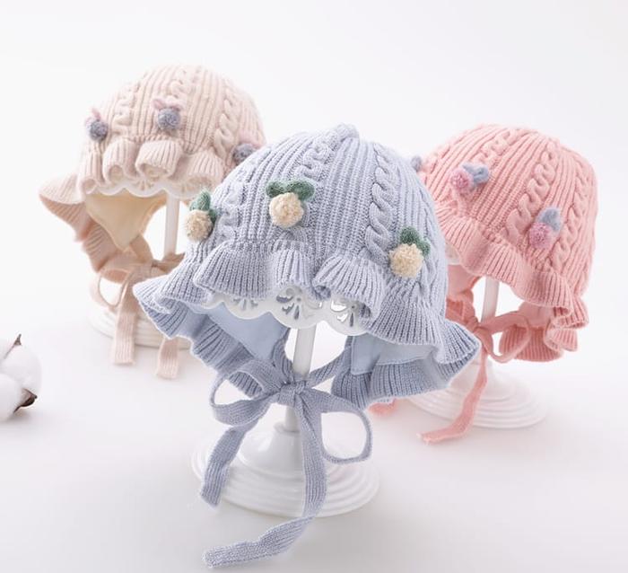 TOPI NONI BAYI / TOPI BONET BAYI / TOPI NEWBORN / TOPI BAYI PEREMPUAN KUPLUK BAYI - TP PINK CHERRY
