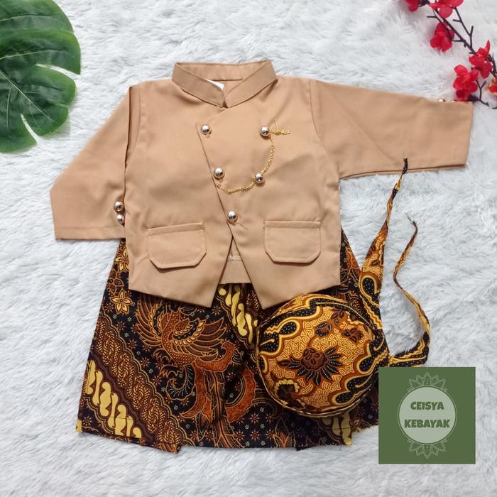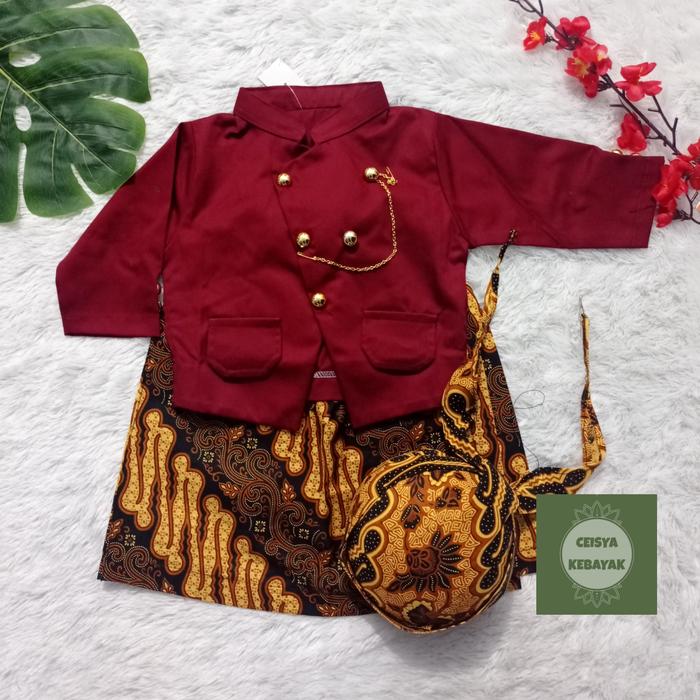 SETELAN BESKAP BABY LAKI LAKI GRATIS BLANGKON - MAROON, 1-2TAHUN