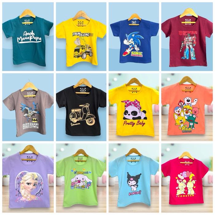 KAOS ANAK PAKET ISI 12PC / PROMO KAOS MURAH / KAOS ANAK TERMURAH - 12PC CEWEK RANDOM, S