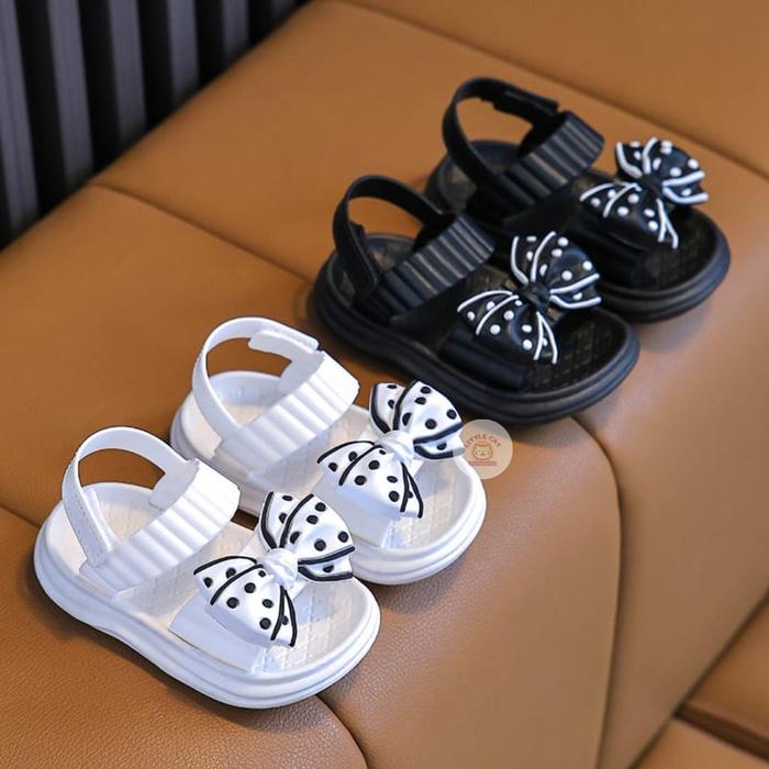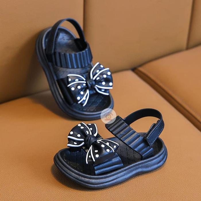 LITTLECAT SANDAL BAYI BALITA ANAK BAHAN KARET MODEL PITA LUCU KEKINIAN ANTI AIR USIA 6 -18 BULAN MIRELLE - HITAM, 18