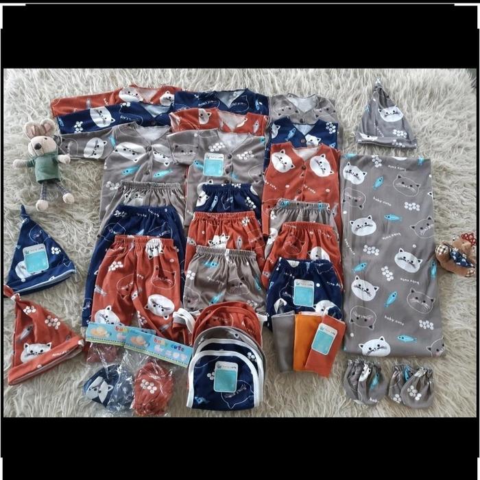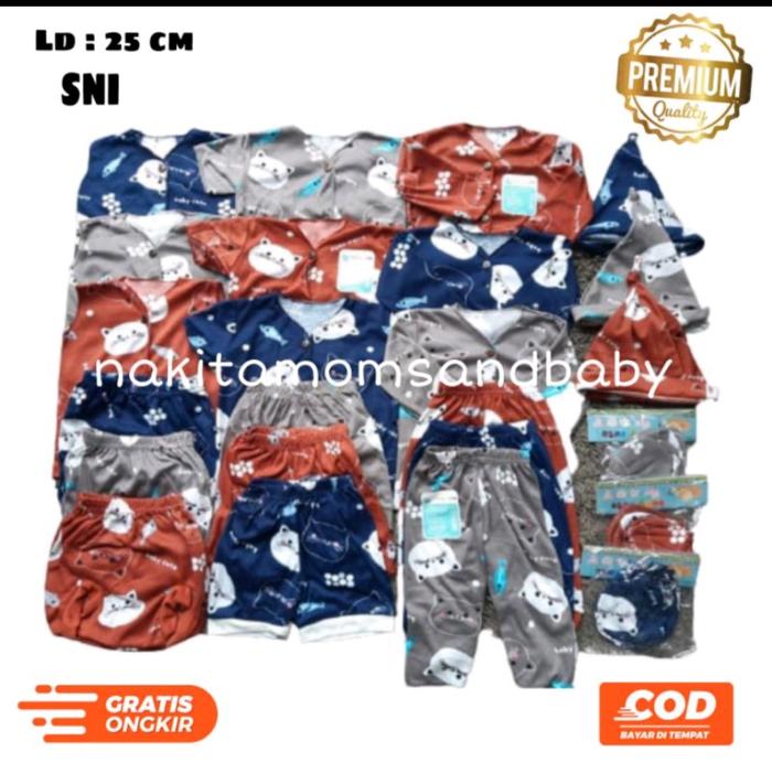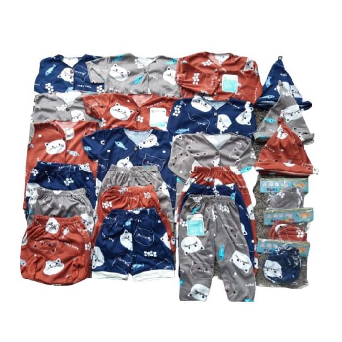 NAKITA 34PCS PAKET PERLENGKAPAN BAJU BAYI BARU LAHIR / NEWBORN PRINTING SERI CAT SNI BABYCUTE CEWEK COWOK PROMO 9.9 - PAKET 24PC, M