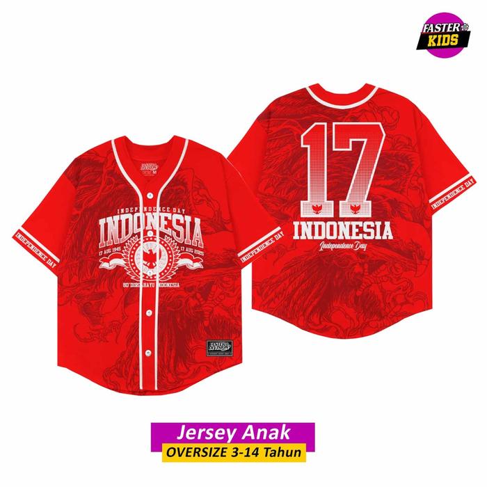 FASTERKIDS JERSEY ANAK KEMERDEKAAN USIA 3-14 TAHUN / JERSEY ANAK LAKI LAKI PEREMPUAN / KEMERDEKAAN 17 AGUSTUS / JERSEY OUTDOOR / JERSEY ANAK SPORT - JERSEY MERAH ANAK, S