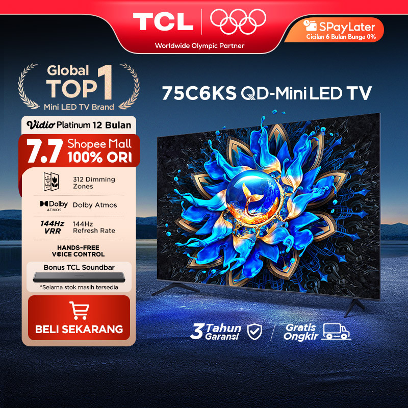 LED TV Mini 75 Inch C6KS High HDR Brightness Dolby Vision Atmos IMAX Enhanced Unibody 144Hz VRR Model: 75C6KS