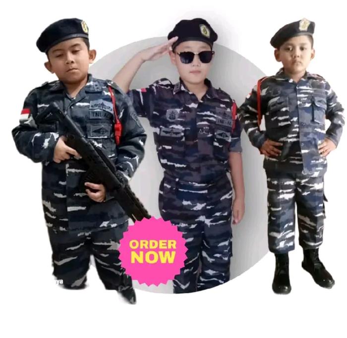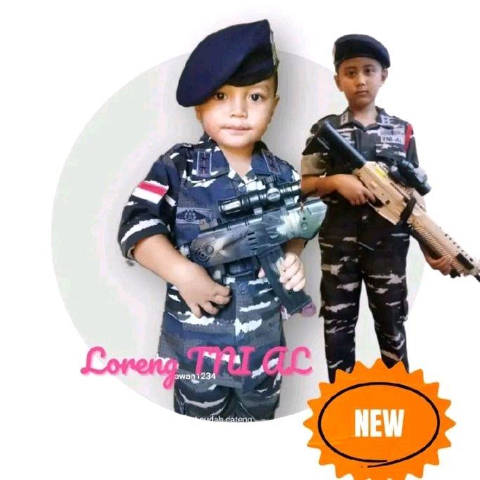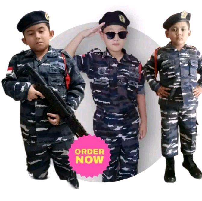 BAJU KARNAVAL ANAK MODEL ARMY LAUT BAJU MOTIF LORENG ANGKATAN LAUT KOMPLIT EMBLEM AKSESORIS BONUS MAINAN KOSTUM FASHION - XS
