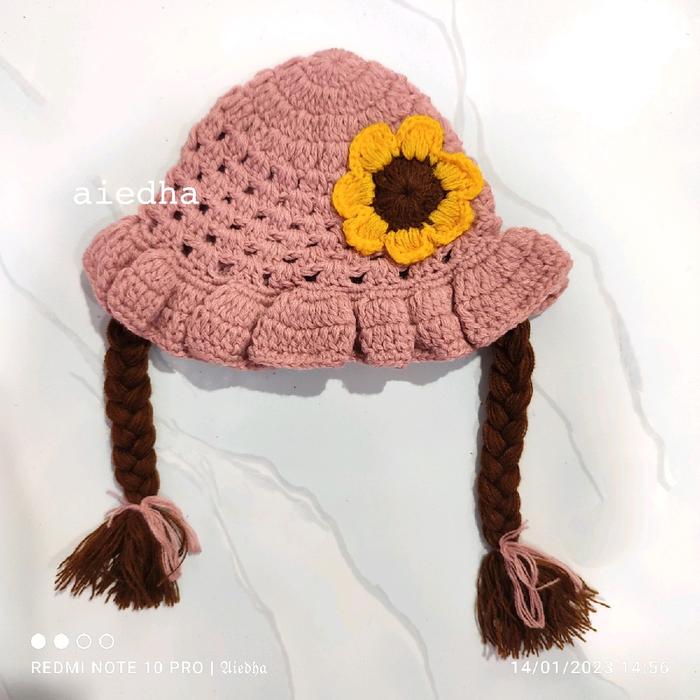 TOPI BAYI RAMBUT SULAM INURHA LUCU 0-12 BULAN - PEREMPUAN - DUSTY, 0-1TH