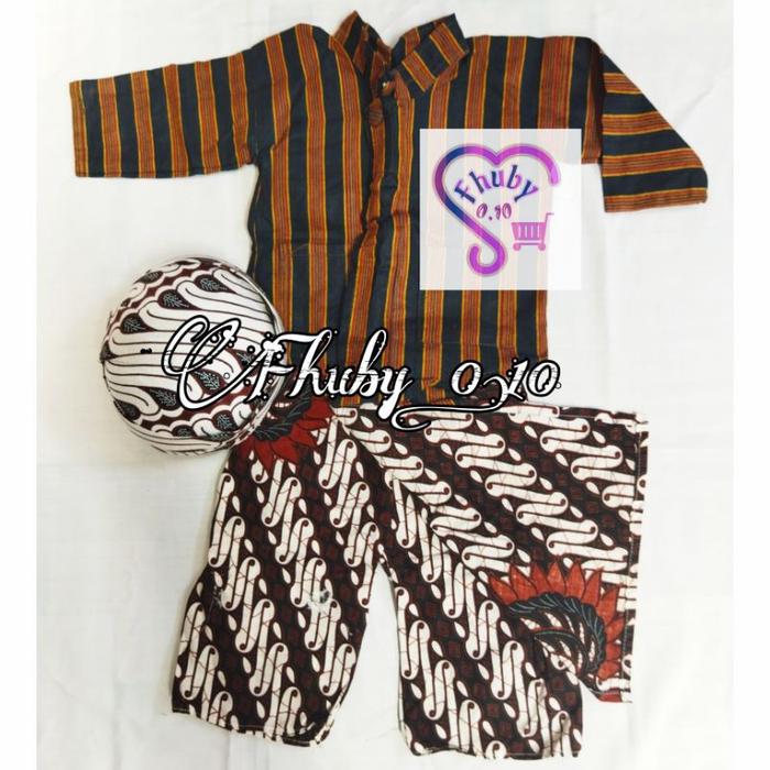 SETELAN SURJAN LURIK ANAK - BAJU+CELANA JARIK PUTIH+BLANGKON - BAJU SAJA, 00