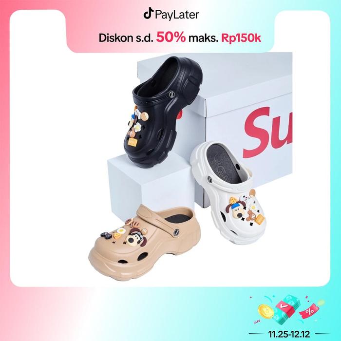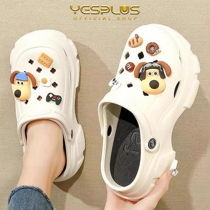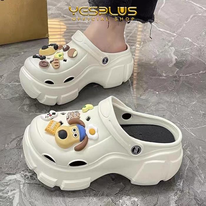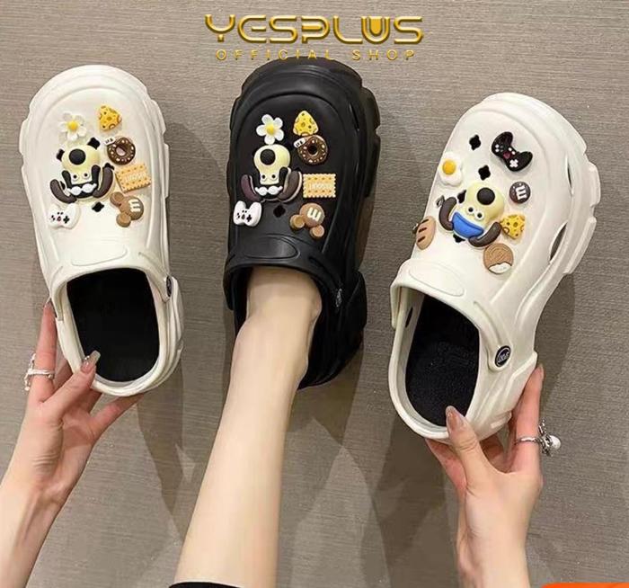 [YESPLUS] 279+91 SENDAL SELOP BAIM FUJI WANITA DENGAN JIBBITZ LUCU BAHAN EVA RUBBER IMPORT PREMIUM COKLAT HITAM PUTIH - HITAM, 36/37