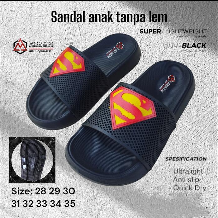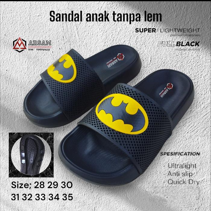 SANDAL ANAK JELLY TANPA LEM | SENDAL BAIM KARET KAKI SANDAL ANAK PEREMPUAN - LAKI LAKI - FASHION UMUR 2 3 4 5 6 7 8 9 11 12 TAHUN EMPUK BAYI BLACK CEWEK - BATMAN, 28
