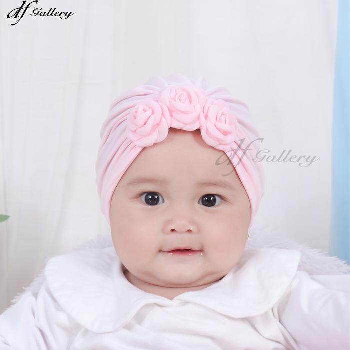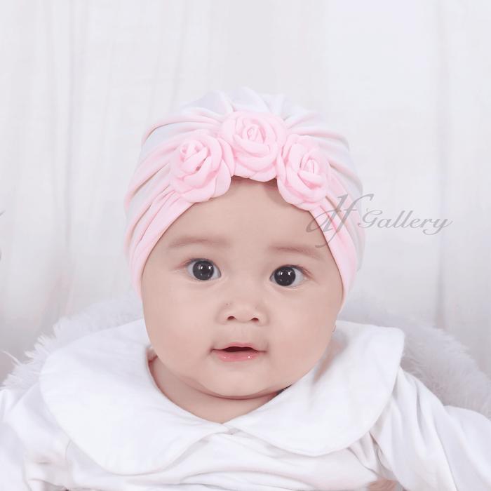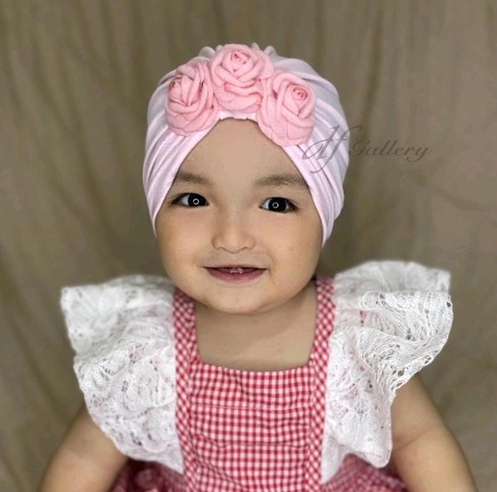 SET TURBAN BAYI PEREMPUAN 0 6 BULAN - 3 TAHUN | PREMIUM CANTIK & MENGGEMASKAN | BLOOMY BY DFGALLERY - MAROON