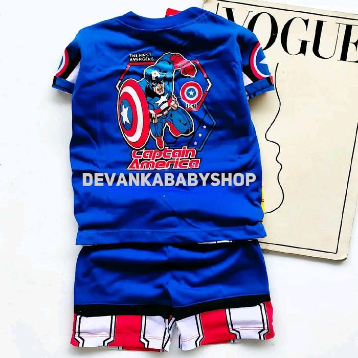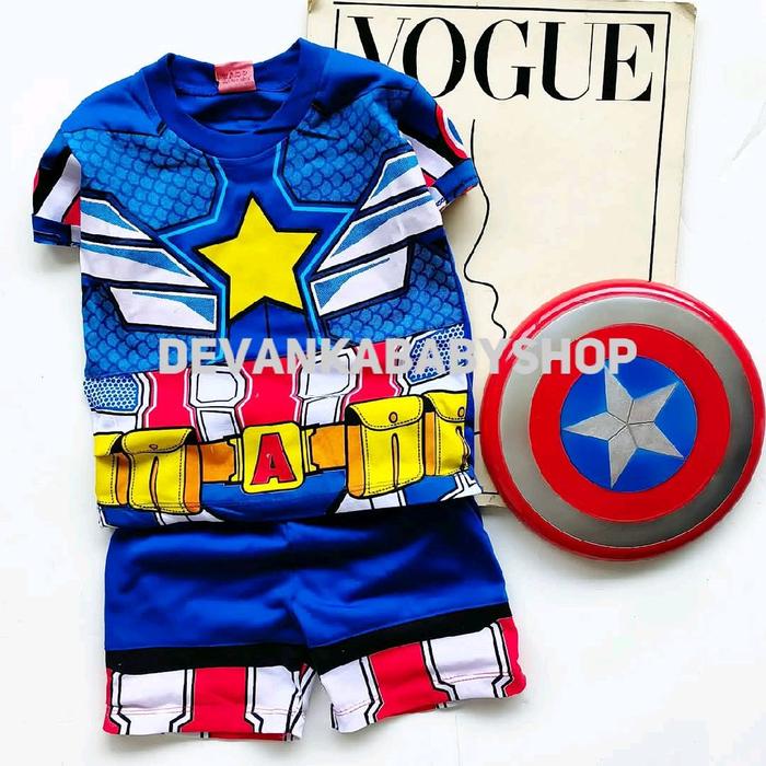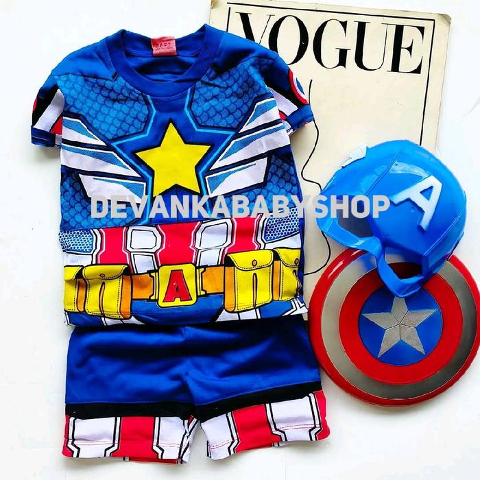 BAJU KAPTEN AMERIKA ANAK SETELAN ANAK SUPER HERO ADA TOPENG TAMENG UNTUK UMUR 1-10 TAHUN FASHION - BAJU+CELANA+TPENG+TMENG, 9-18BLN