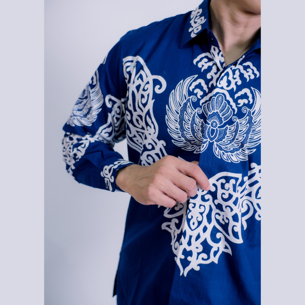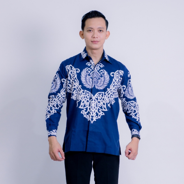 BATIK SIMONET BAJU BATIK PRIA PAKAIAN JADI LENGAN PANJANG BTKPNAVY002