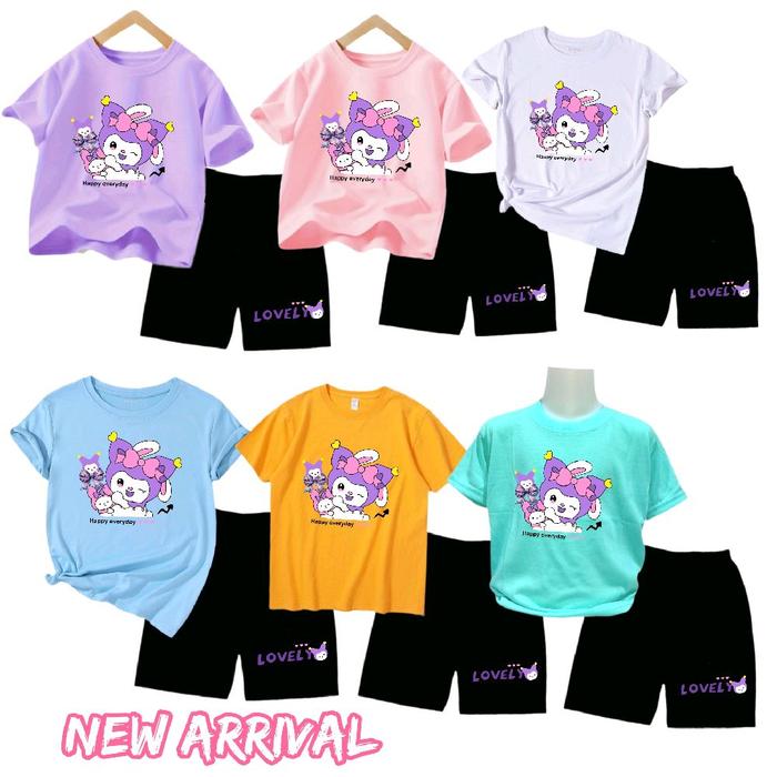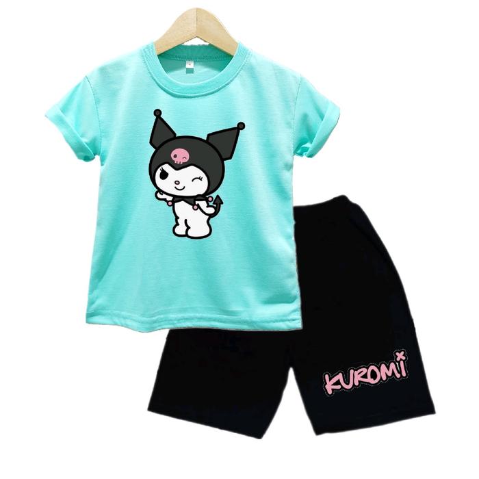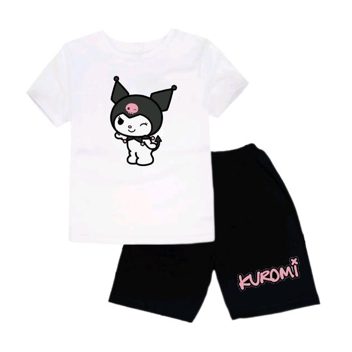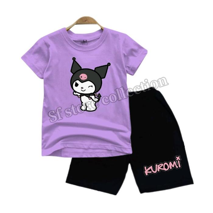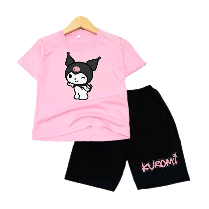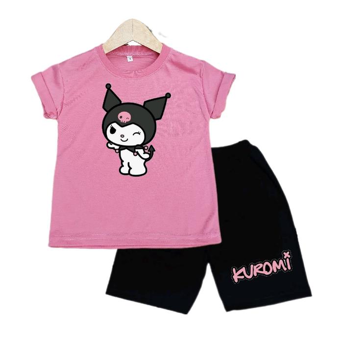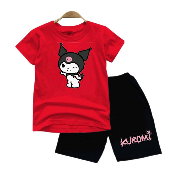 BAJU SETELAN ANAK PEREMPUAN KUROMI USIA 2-9 TAHUN BAHAN LEMBUT - MERAH, S
