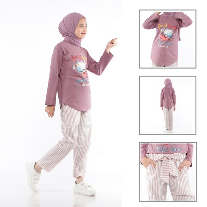 SETELAN BAJU KAOS ANAK PEREMPUAN USIA 4 SAMPAI 14 TAHUN CELANA PAKAIAN FASHION - DENIM, M