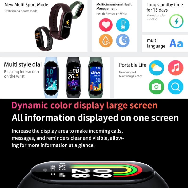 SmartBand SAMSUNG M8 Pria untuk Olahraga, dilengkapi dengan pemberitahuan panggilan masuk, notifikasi pesan, fitur lari