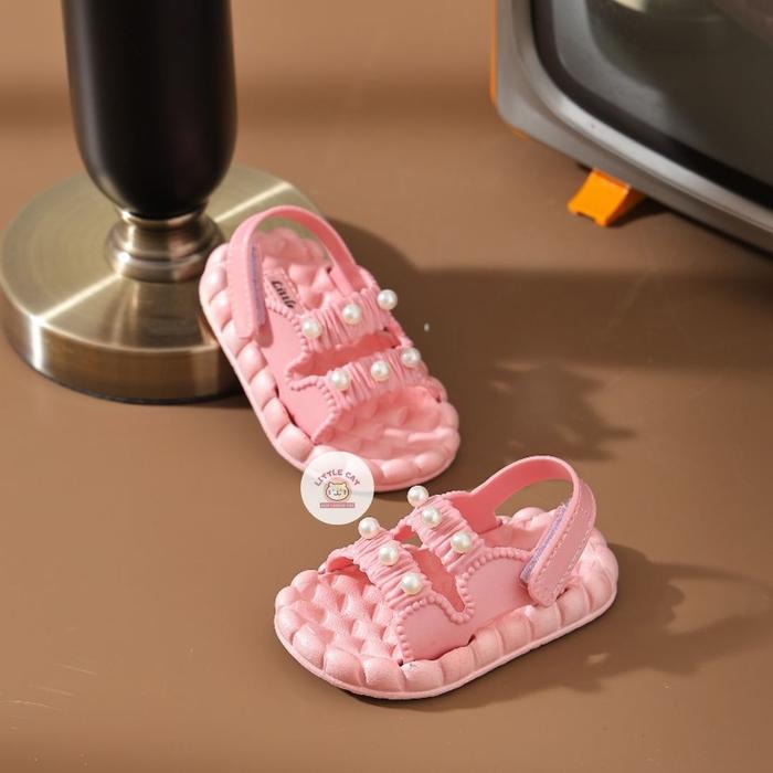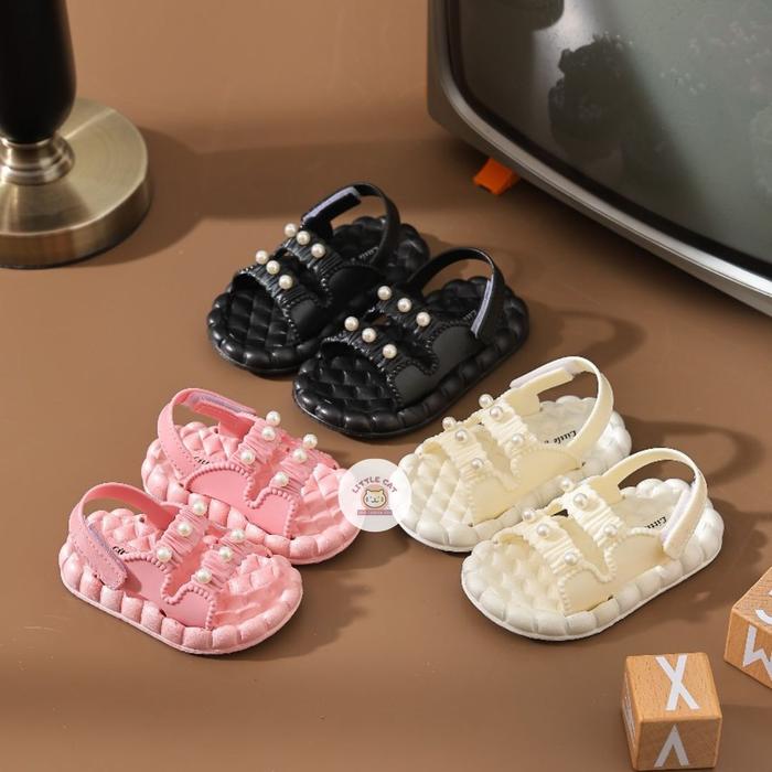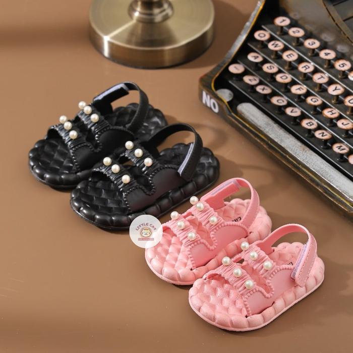 LITTLECAT SANDAL BAYI BALITA ANAK BAHAN KARET MODEL ALA KOREA LUCU ANTI AIR USIA 6 -18 BULAN CHERIKA - HITAM, 18