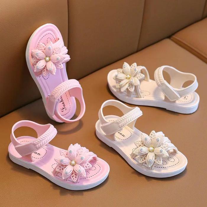 LITTLEONES - SP106 SANDAL IMPORT FLAT FLOWER ANAK PEREMPUAN LUCU LEMBUT FASHION TERMURAH MODEL KEKINIAN CASUAL - CREAM, 24