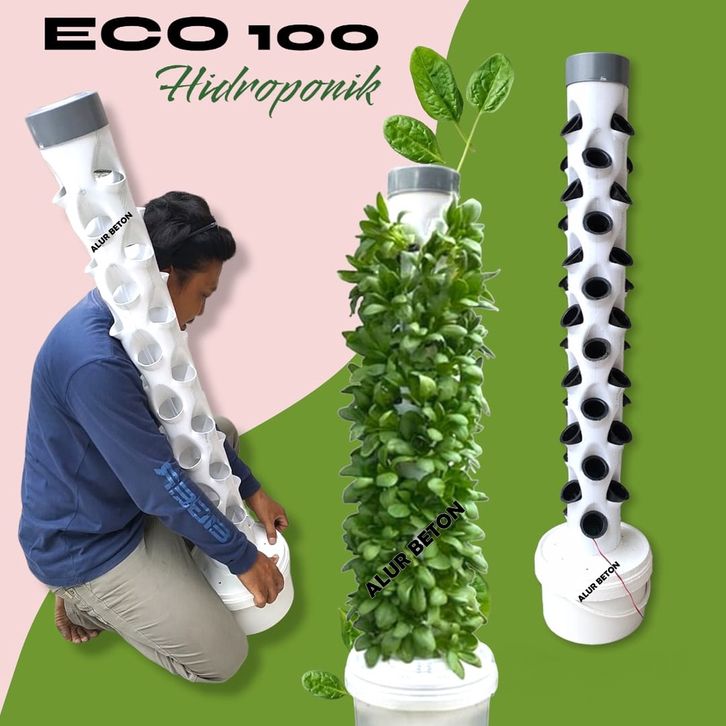 Paket Instalasi Hidroponik ECO TOWER 100 - Vertikultur 42 Lubang Tanam