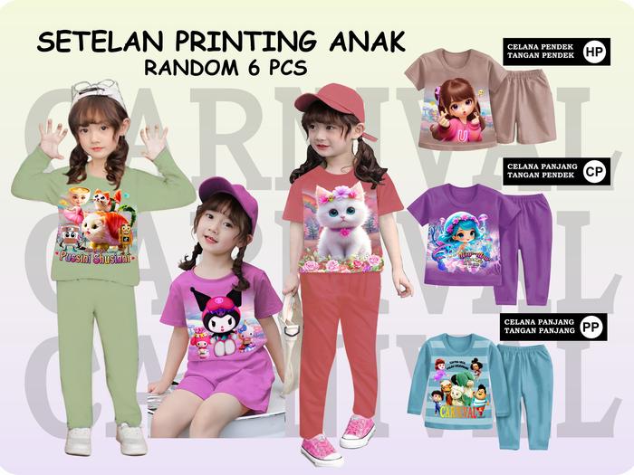 PAKET HEMAT SETELAN ANAK PEREMPUAN MODEL DASAR POLOS, MOTIF PRINTING LUCU, 6 SETELAN, USIA 1-8 TAHUN - FASHION BAYI PARSEL - HP 6 PCS, NO 1 ( USIA 1 TAHUN BB 6-8 KG ), RANDOM