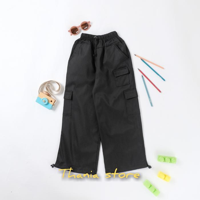 CELANA ANAK PEREMPUAN LAKI LAKI ROSE CARGO KOREAN STYLE 1-13 TAHUN - FASHION CELANA CARGO ANAK ANAK PEREMPUAN - HITAM, S