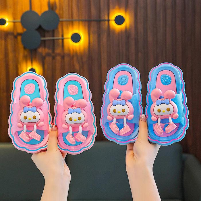 PROMO 8.8 IMPORT OKAYBABY B394 SENDAL SLOP KARTUN ANAK PEREMPUAN IMPORT KEKINIAN FASHION SANDAL LUCU ANAK CEWEK ANTI SLIP BAHAN KARET JELLY ANTI LICIN CASUAL UMUR 3-11 TAHUN TERBARU - BLUE, 24-25