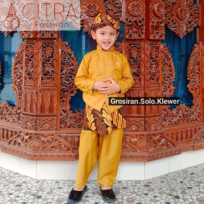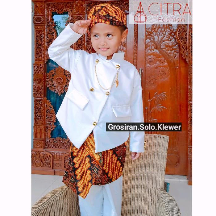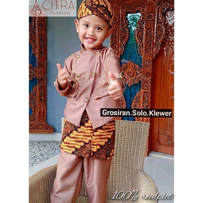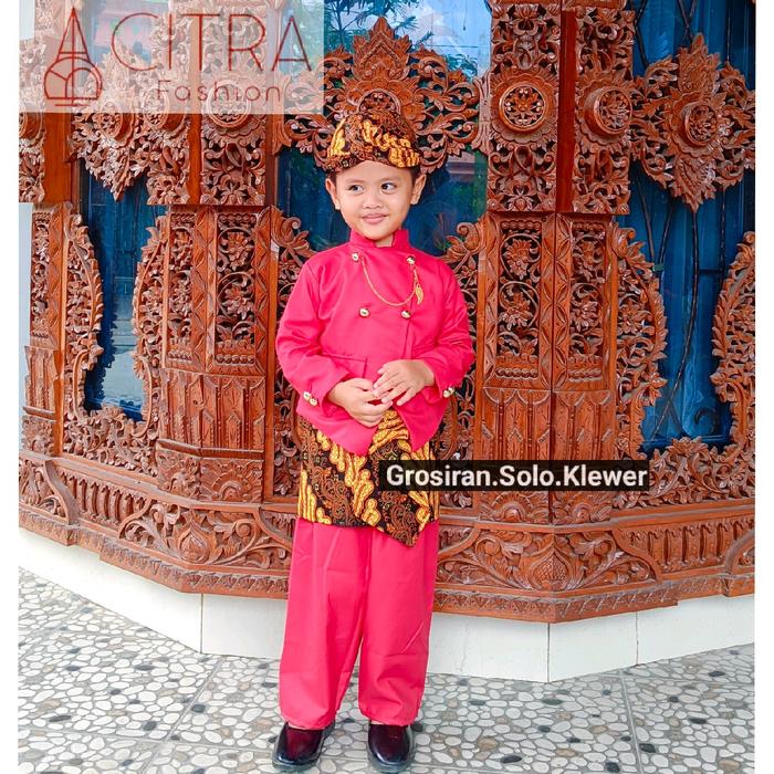BESKAP BASOFI BLANGKON COKLAT SEMBONG INSTAN MOTIF PARANG SENADA BAJU ADAT KOSTUM ANAK BASOFI PREMIUM SETELAN FASHION - MERAH, M/ 3-4,5 TAHUN