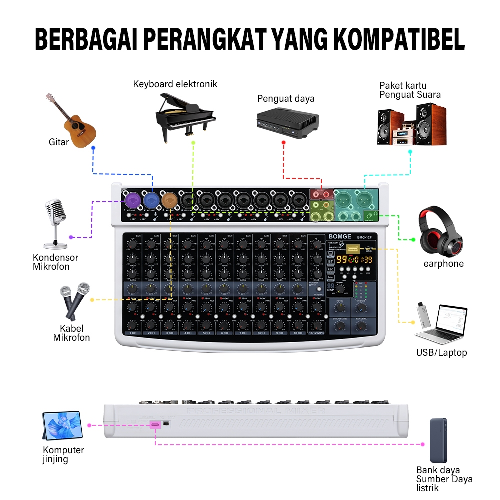 NEW ORIGINAL BOMGE 12F Mixer Audio Profesional 12 saluran 12 F