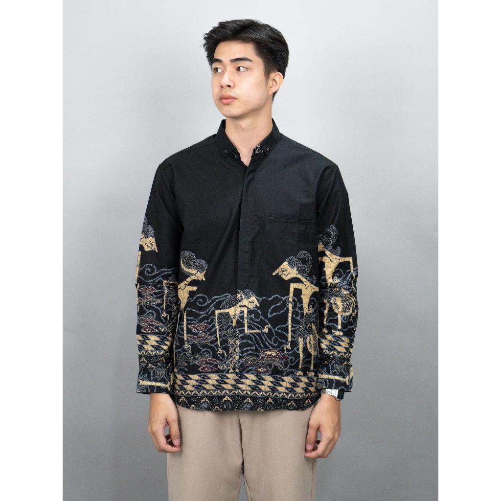 SWIPE UP KEMEJA BATIK PRIA MODERN LENGAN PANJANG ARJUNA BLACK NAVY